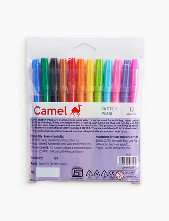 Camlin – Sketch Pens | Assorted pack of 12 shades | Full size