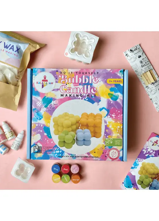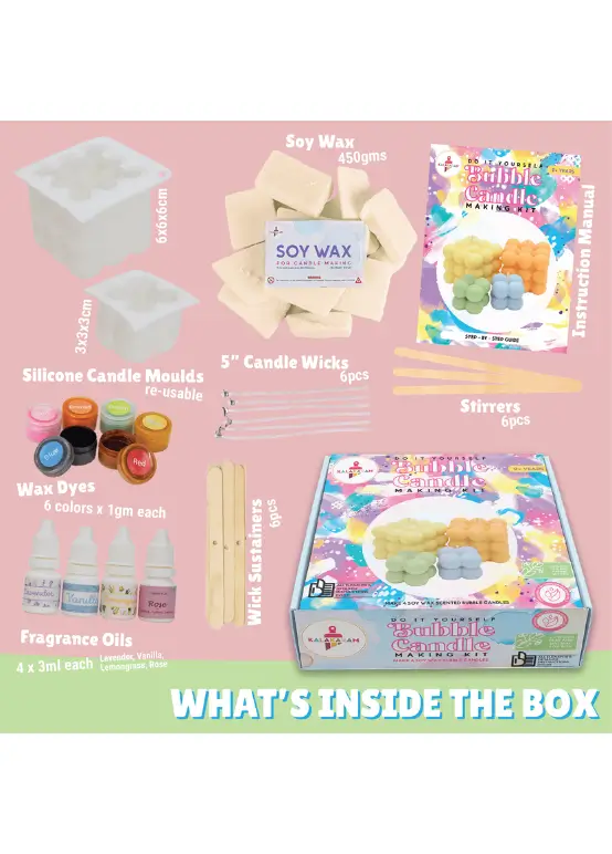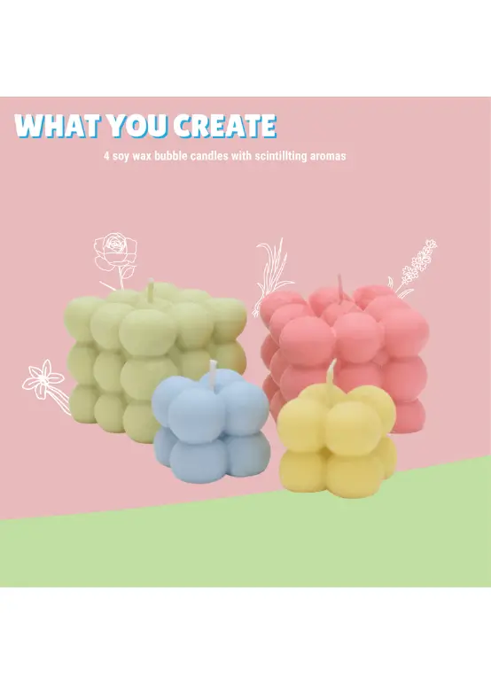 FLAUNT YOUR HANDMADE BUBBLE CANDLES: Make 4 gorgeous looking soy wax bubble candles with fancy colors and exotic fragrances. Use them to decorate your home or gift them to your loved ones.