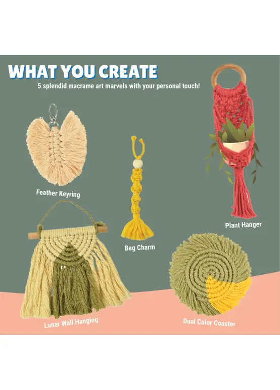 INSTILLS APPRECIATION FOR HANDCRAFTED ART: Crafting unique macrame items helps children understand and value handmade artistry, inspiring a love for traditional crafts.